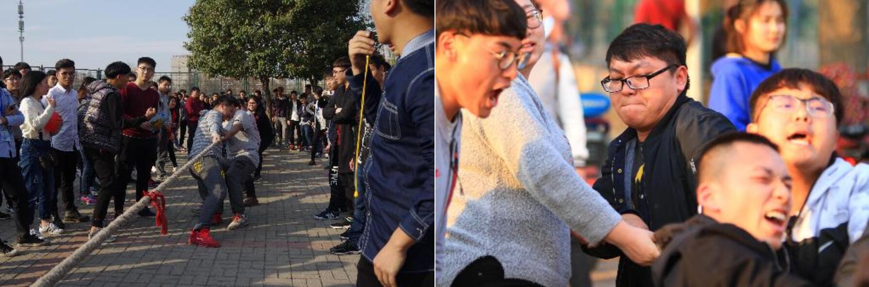 本次活动采用闯关计时积分制模式,添加了许多新颖的活动项目。运动会共分为疯狂袋鼠跳、成语呼啦圈、单词绑腿跑、挑战恐怖箱、瞎子背瘸子、指压板螃蟹运球、撕名牌大作战等七个项目,最后进行了专业间的拔河比赛。现场气氛非常活跃,欢呼和喝彩声不断。挑战恐怖箱的心理大作战神秘惊险,撕名牌的快乐跑跑跑快乐又刺激,绑腿跑和呼啦圈一边运动一边考验英文知识积累和快速反应……同学们一边感受竞赛的“你强我更强”,一边享受团队合作带来的快乐。尤其在最后环节的拔河比赛中,老师同学齐上阵,加油呼喊真给力。经过轮轮比拼,2016级电子商务专业傲视群雄,以6:0的骄人战绩获得第一名!整个足球运动场一片欢声笑语。