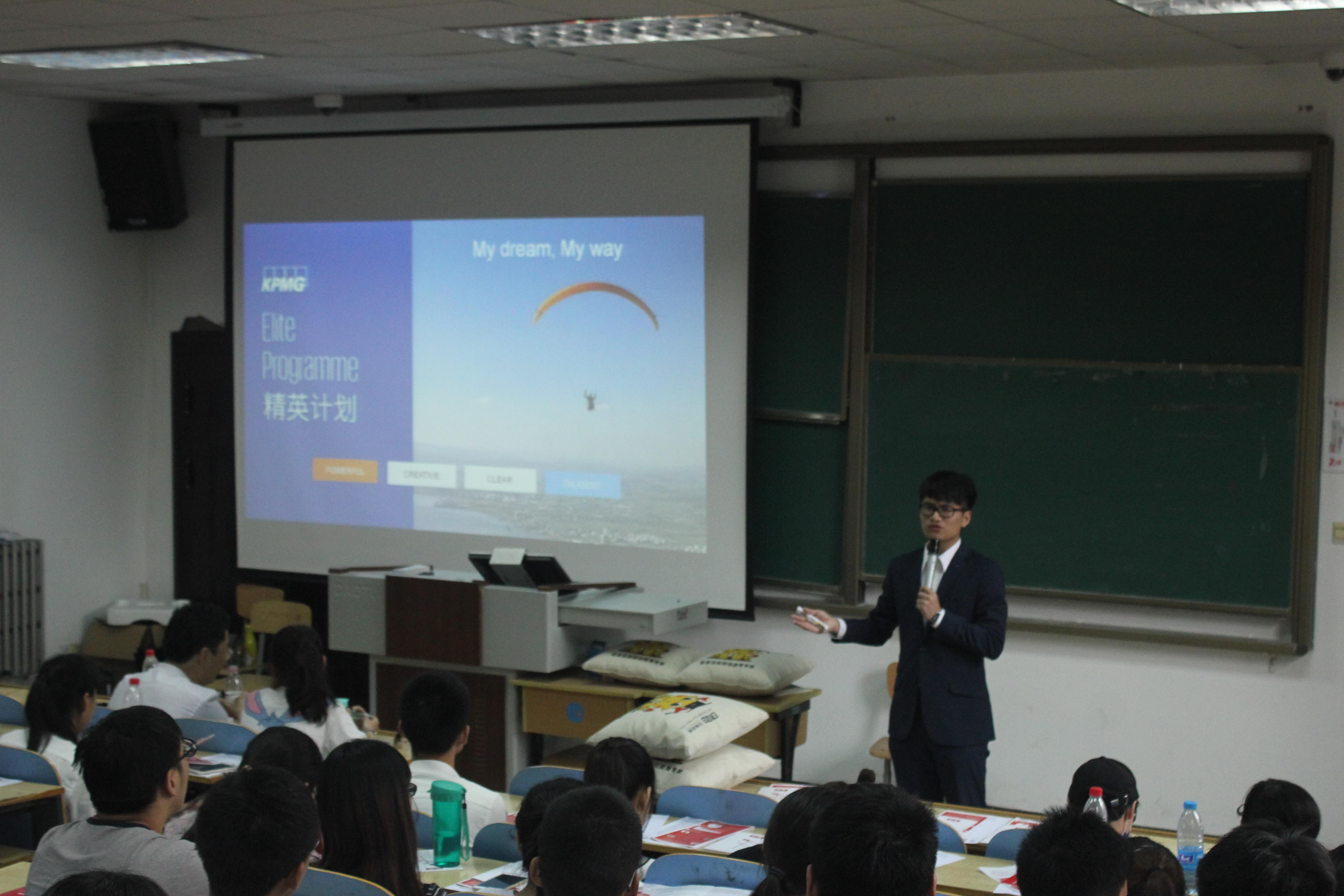 李冠衡同学,郑州航空工业管理学院会计学院13级会计学ACCA方向学生,已拿到普华永道和德勤会计事务所的双offer,现就职于普华永道会计事务北京分所,他将自己从国内八大会计事务所到国际四大会计事务所的求职经历一一讲述,在讲到面试技巧时,特别强调了展示自我和不惧风险的重要性,不能因为学历差距而把自己看扁,令同学们学习颇多。陈永杰同学,郑州大学商学院14级工商管理专业学生,曾入围香港注会HKICPA案例分析大赛优秀团队之一,现就职于毕马威中华区总部。他向在座的学生简单介绍了KPMG,分享了他如何成功面试毕马威的三个故事,鼓励同学们相信自我的无限可能,使同学们热情高涨。在讲到应聘笔试时,陈永杰学长的一句“最好的捷径就是刷题”,让同学们印象深刻。