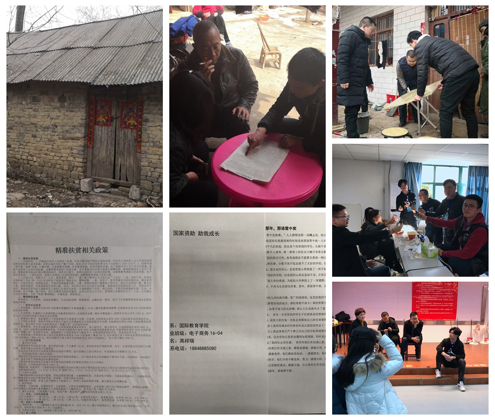 首先,我院高度重视建档立卡贫困学生的学习生活,在上学期期末通过开展茶话会、座谈会等形式,给予温情关怀。其次,在寒假期间,我院志愿者前往邓州市彭桥镇丁北村小王庄进行走访,在走访期间,志愿者主动担负起劳动义务,并向学生家长解读国家资助政策,通过自身行动向困难家庭送去温暖。同时,在受国家资助学生中开展“国家资助、筑梦成才”征文活动,旨在培养受助学生自立自强、诚信感恩,爱国爱校的优秀品质,取得了良好的反响。