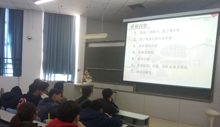 为营造国际化教育氛围,帮助学生更好地了解中外合作办学项目,国际教育学院于11月8日中午在教三楼203召开爱丁堡龙比亚大学中外合作办学项目宣讲会。为提高针对性和实效性,宣讲会按专业分为普通类和艺术类进行。学院出国留学负责老师和700余名学生参加了此次活动。 学院负责留学管理陈璐老师从合作项目、龙比亚大学的学习和生活情况、往届优秀学生的出国经历、未来职业规划以及留学发展空间等方面做了详细介绍,让同学们更加真切地感受中外院校教育理念和教育方式的不同。 龙比亚项目刘畅老师详细地介绍了国外合作院校情况、合作办学模式、交换生项目、语言要求、语言学习准备、课程衔接、学位授予等方面的情况。最后,学生就合作办学项目踊跃提问,负责老师耐心细致地进行了解答。 通过本次宣讲会,同学们对我校和龙比亚大学的合作办学项目有了更深入的了解,进一步坚定了努力学习以实现留学梦的决心。