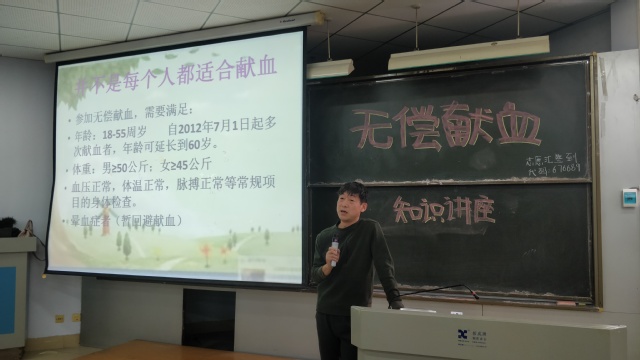 此次无偿献血的知识讲座为同学们普及了血液生理知识加深了同学们对于无偿献血的了解,消除了大家对无偿献血的一部分顾虑,为在校园中推进无偿献血及此类公益志愿服务活动营造了良好氛围
