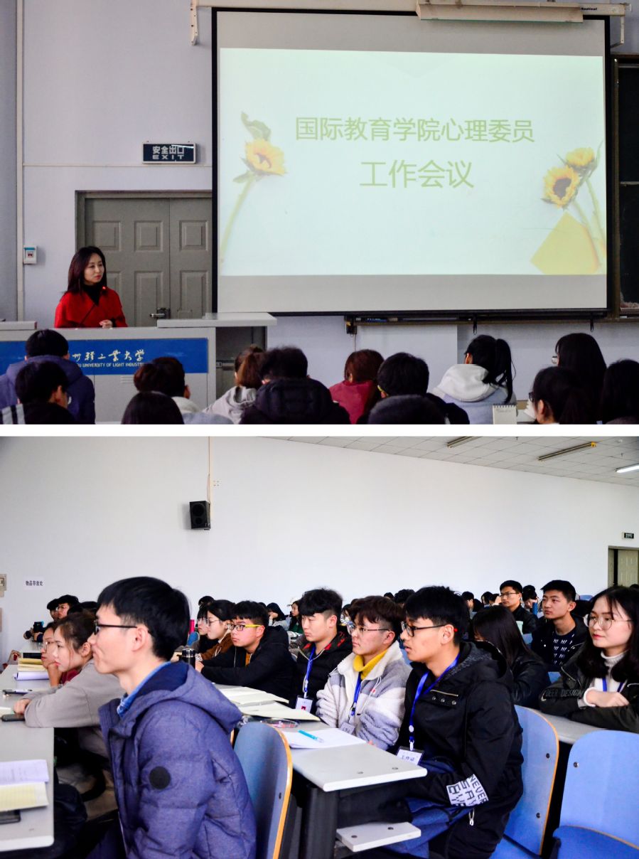 3月8日中午,国际教育学院在教三楼301召开新学期心理健康工作会议,会议由我院心理健康教育专职辅导员赵梦婕老师主持,心理部全体成员以及16、17、18级心理委员参加了会议。