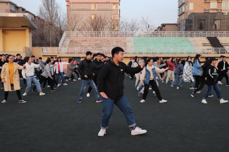 早上6:30分,天蒙蒙亮,同学们已在操场集合完毕,清点人数后,随着一声“跑步走!”,同学们迈着整齐划一的步伐,开始了早操的热身晨跑。热身过后,同学们以班级为单位成早操队形散开,沐浴在初春的阳光下,同学们在班委带领下开始打太极拳,白鹤亮翅、单鞭、云尾各式打得都有模有样,一招一式行云流水,队伍整齐划一。