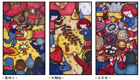 支部党员通过日常观察、自身感悟、查阅资料、访谈家人等途径,深刻体会到改革开放40年来中国社会的历史变迁和人民生活的重大变化。党员学生结合自身专长,以三联画的形式生动呈现了三代人在年夜饭、拜年习俗、庆祝方式等方面的中华传统文化。通过叙事和对比的方式,向我们传递着时代变迁带来的可喜变化:物质生活水平极大提高、生活方式日趋多元、环保观念深入人心、精神文化生活日益丰富、思想道德水平不断提高。党员同学的作品主题鲜明、构思巧妙、色彩丰富、表达准确,具有良好的示范作用,将在学院内进行展示和宣传,为培育和弘扬中华优秀传统文化营造的浓厚氛围。