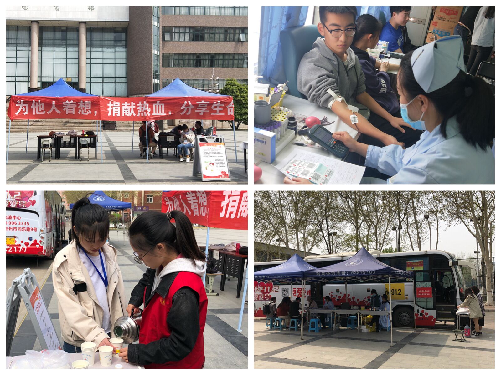 此次活动在东风校区图书馆广场举行,吸引了广大师生的踊跃参与。上午十一点开始,就有不少同学陆陆续续在献血车前排起了队,爱益心志愿者们热情地为他们讲解献血的基本常识后,指导他们填写“义务献血登记表”,讲解流程,并为献完血的同学倒水以及发放献血证和纪念品等。整个活动过程中,志愿者们都一直微笑着耐心做好服务,最后,志愿者们也都亲身参与了献血活动,自愿为社会奉献出一份爱心。