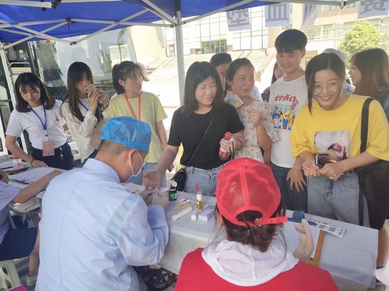 5月23日下午,国际教育学院爱益心志愿服务队联合省红十字血液中心在东风校区图书馆广场共同举办了“凝聚公益力量,弘扬时代精神”测血型公益活动。