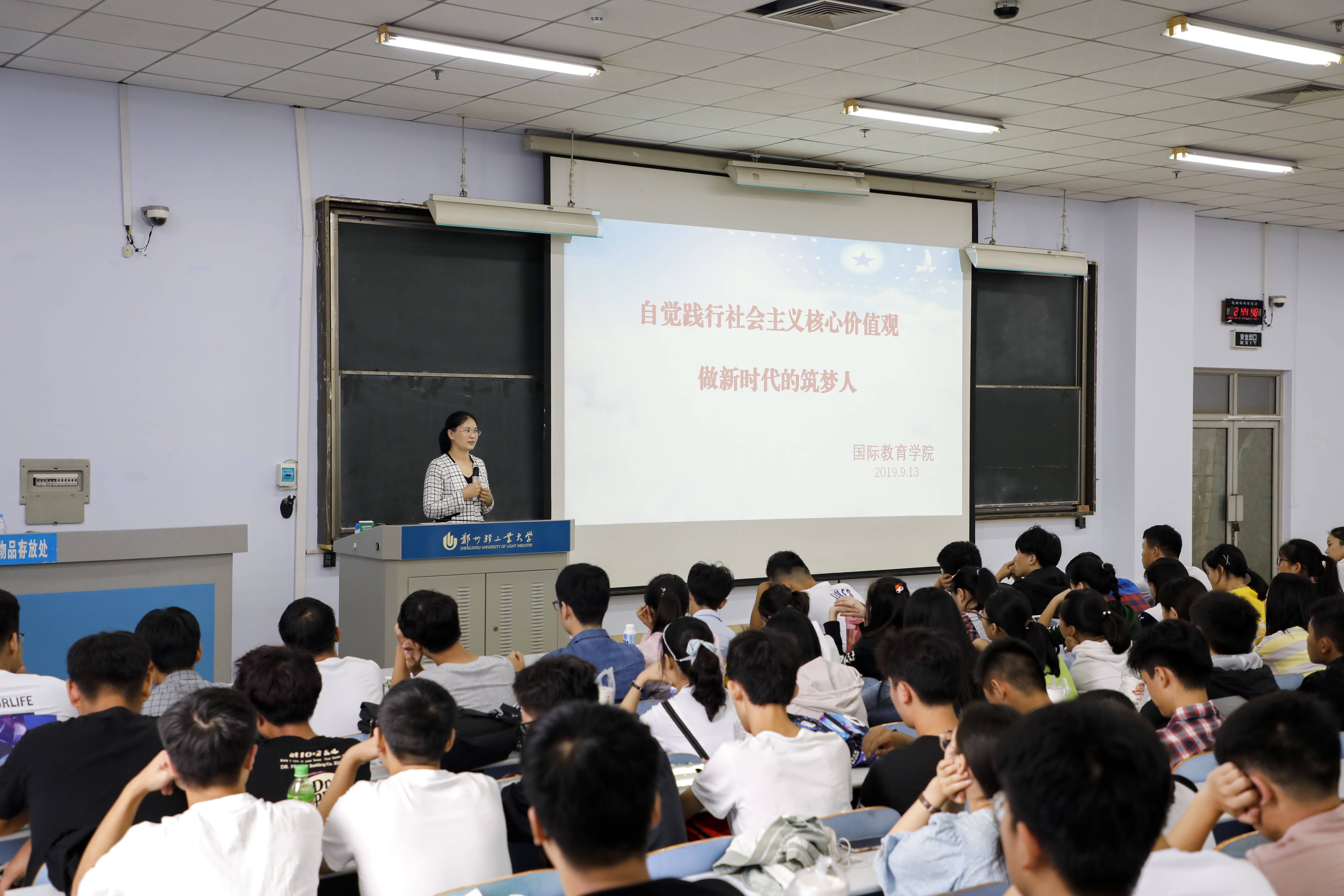 为大力弘扬社会主义核心价值观,教育引导学生自觉加强理想信念和思想道德建设,913日上午,国际教育学院在教三楼302教室开展“践行社会主义核心价值观,做新时代的筑梦人”主题教育,学院党总支副书记李锐杰老师主讲,新生辅导员和全体新生参加了此次活动。