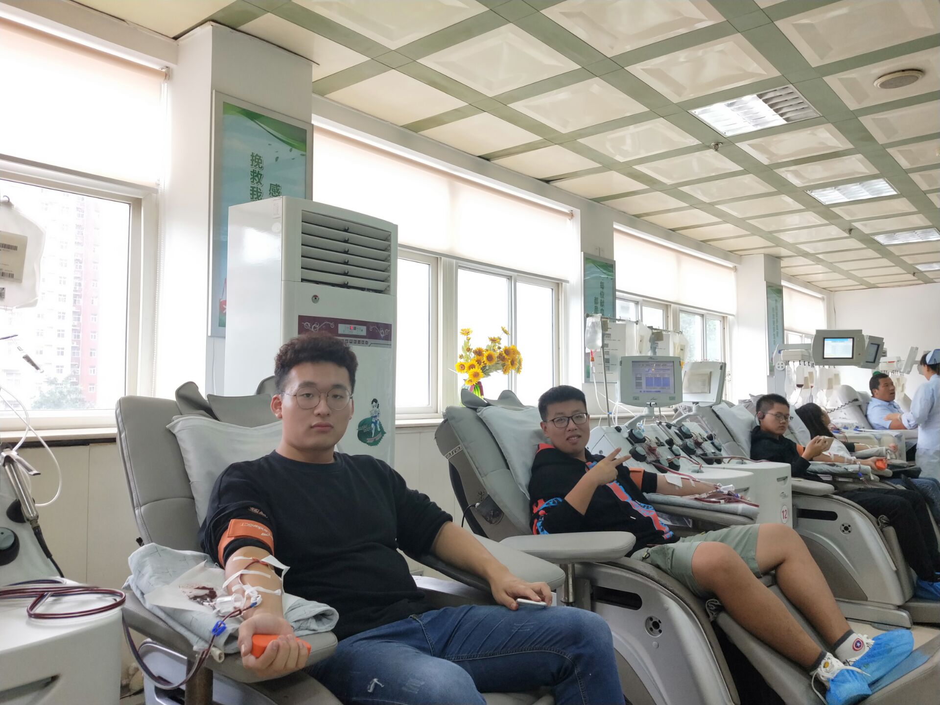 中午十二点,志愿者们来到河南省红十字血液中心,在工作人员的引导下,同学们有序进入献血大厅进行登记、体检、化验、采血。为缓解同学们的紧张情绪,有过献血经历的党员志愿者们结合自己的献血经历耐心的向大家讲解献血的相关知识和注意事项,帮助大家放松心情。截止下午6点,参与本次活动的同学全部完成单采成分血捐献,活动顺利结束。