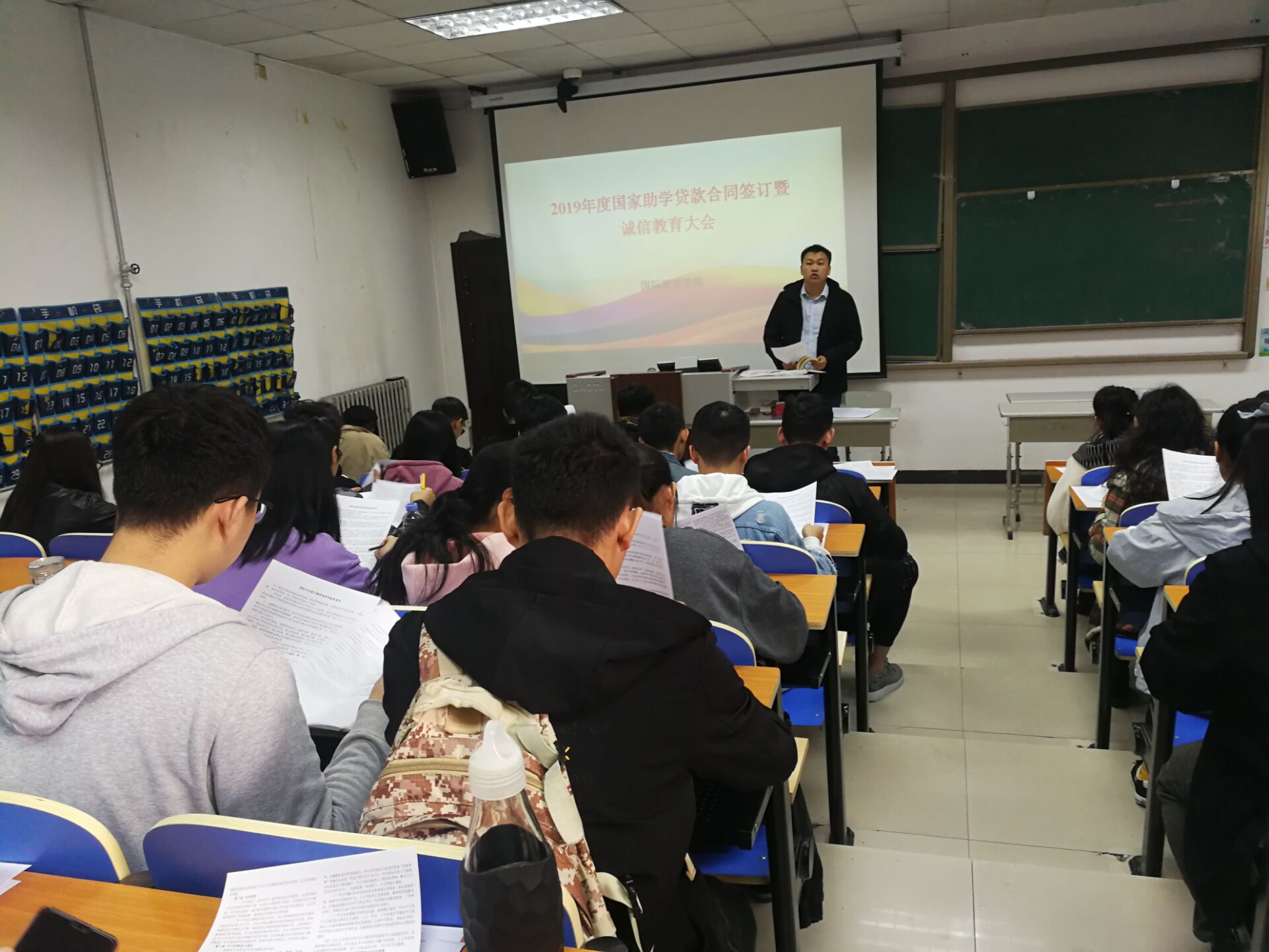 为进一步强化我院助学贷款学生诚信教育,完善助学贷款各项工作流程,11月8日12:30,2019年高校助学贷款签约暨诚信教育大会在教二楼229召开,国际教育学院贷款工作负责人王赛老师和122名贷款学生参加了本次会议。