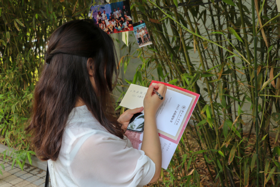 纪念活动在毕业生代表学院门前合影留念后正式开始,大家漫步在“时光之旅”重温大学四年的青春故事,“DIY毕业纪念衫”表达了毕业生对母校、老师、学弟学妹的诚挚祝福和对自己大学四年时光的不舍之情,“丝带纪念”、“签名墙”等温馨活动留下了大家对四年大学生活最美好的回忆。
