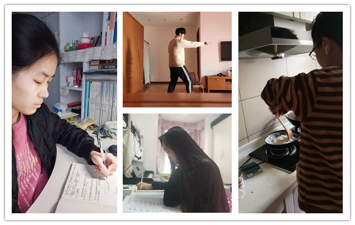 疫情的影响虽然使大家暂时不能在教室相见,但网络课堂良好的交互性,带给大家的依然是浓浓的课堂氛围。本次活动中同学们在班级QQ群、微信群中通过照片、截图、小视频等线上打卡方式参与活动,用心记录每日的学习轨迹、日常体育锻炼、家务劳动三个日常学习生活画面。在学习轨迹记录打卡中,同学们通过学习笔记的展示、课堂画面的截图等方式将日常学习经验与大家进行分享;体育锻炼打卡中,同学们积极响应运动号召,将日常锻炼进行记录,与同学分享自己的运动心得;家务劳动打卡中,同学们记录了整理内务,饭菜烹饪等内容,同学们在自我学习、自我提升的同时也促进了班级同学相互学习、共同进步。