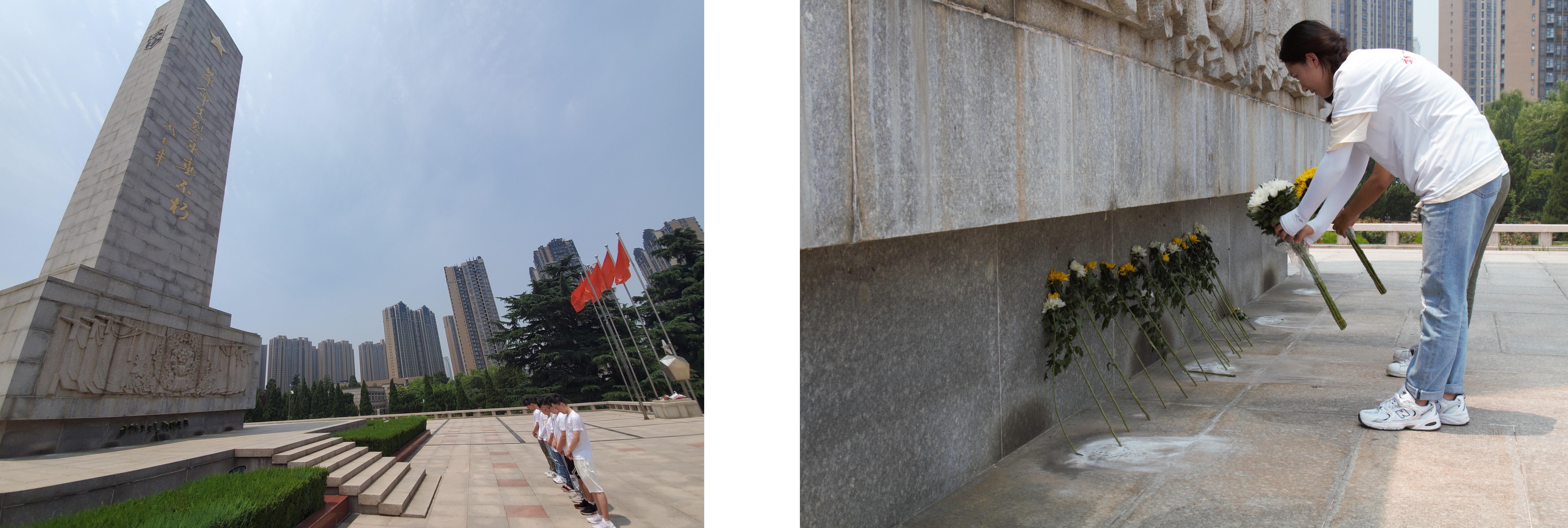 在支部书记路阳老师和王赛老师的带领下,实践队队员前往位于郑州市中原英烈纪念馆,学习革命先烈的英雄事迹,弘扬革命先烈的崇高精神,将党史、新中国史教育融入教育活动中,让队员们深入了解国家近现代发展进程和中国共产党光辉历程,接着,队员们在党旗下重温入党誓词。通过参观学习,大家都表示今天的幸福生活来之不易,一代又一代共产党人,以力挽狂澜的担当和气魄,用鲜血和生命挺起了中华民族的脊梁,实现了祖国独立和解放,建立了彪炳史册的不朽功勋。活动有效引导成员用唯物主义辩证法看待国家发展、社会进步、国际形势,在实践过程中牢固树立正确的世界观、人生观、价值观。