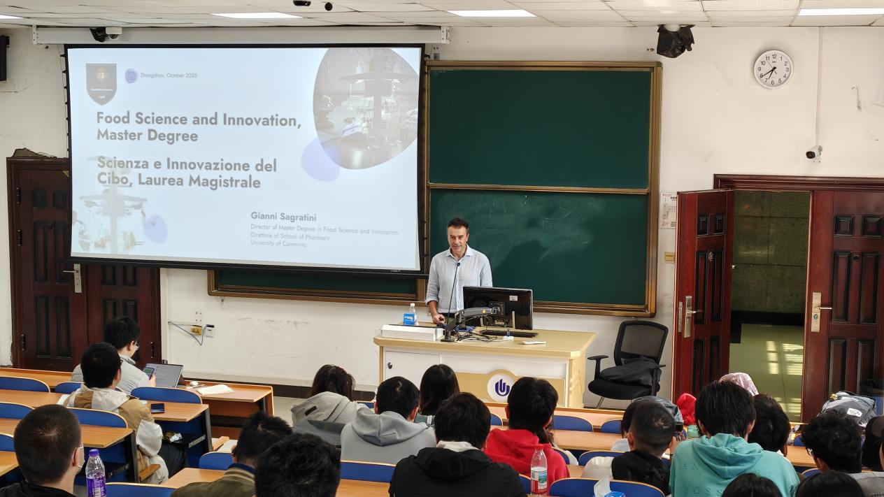 2025年10月15日中午,意大利卡梅里诺大学药学院院长Gianni Sagratini应邀开展专题宣讲,正式启动两校合作的食品科学与工程专业免试申研项目,为学生搭建了一条国际化深造新通道。两校合作渊源深厚,自2014年建立合作关系以来,已在本科双学位培养、师生互访、博士联合培养等领域取得丰硕成果。食品科学与工程本科中外合作办学项目于2024年获评河南省首批优质中外合作办学培育建设项目,在已毕业的两届学生当中已有80余人斩获国内外知名高校深造资格,为此次推研项目奠定了坚实基础。