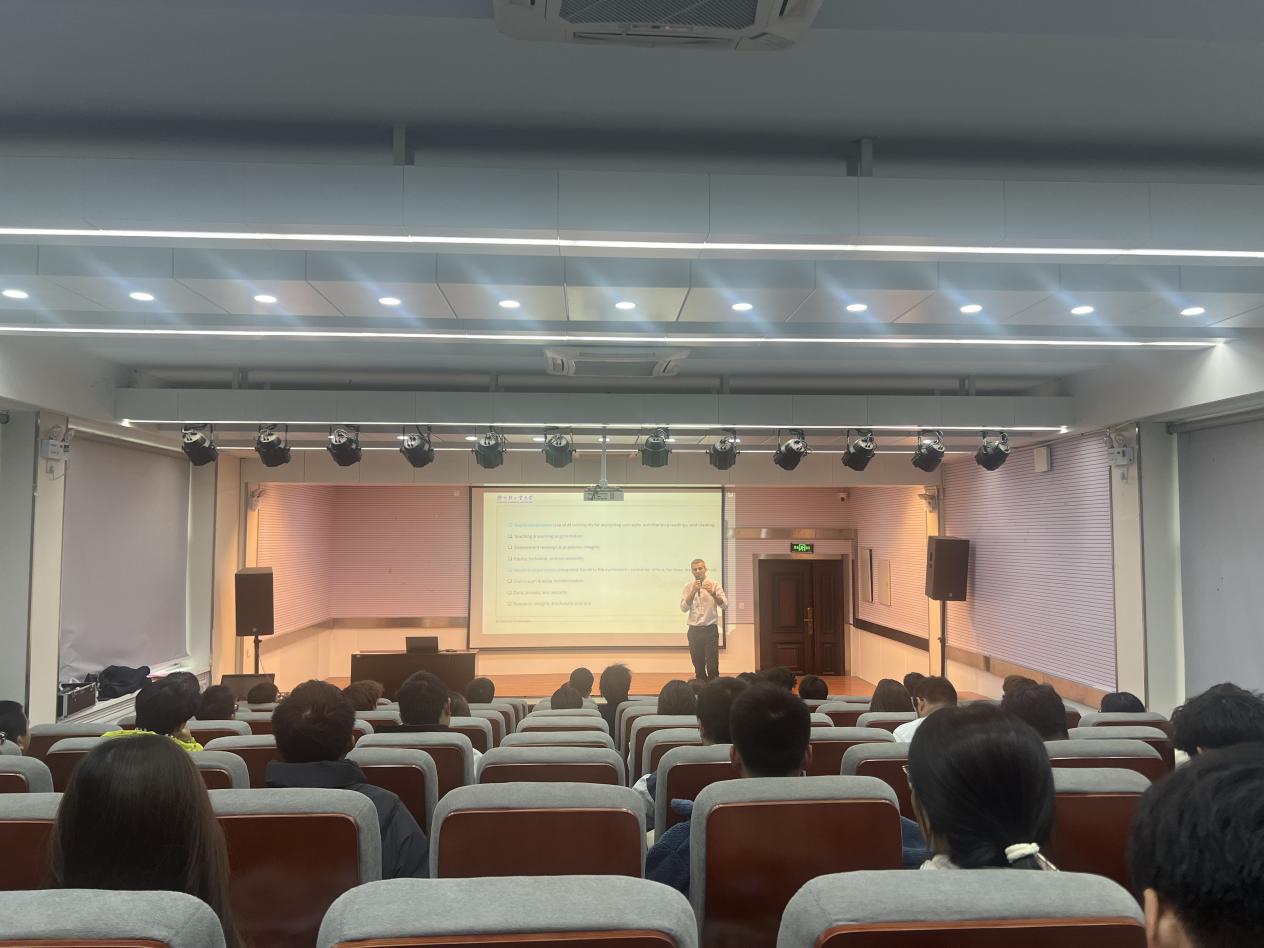 本次活动直面大一新生最关切的AI时代学习适应问题,为学生厘清发展思路、规划学业路径提供了专业指导。作为国际教育学院引进优质外教资源的重要举措,大师讲坛持续为中外合作办学项目学生拓展国际视野,助力学生培养跨文化交流能力和全球竞争力。