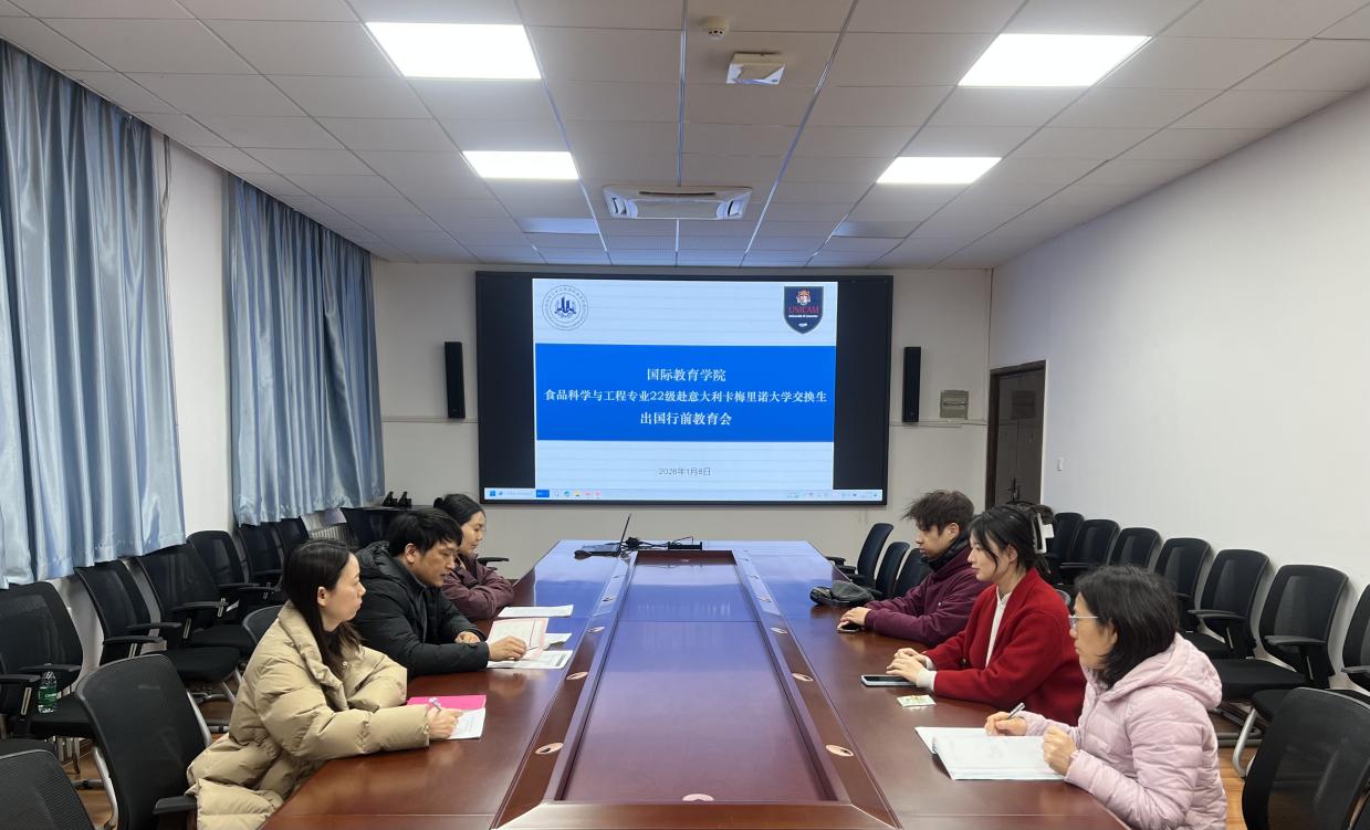 1月8日上午,国际教育学院在教二楼325组织召开食品科学与工程专业22级交换生赴意大利卡梅里诺大学出国行前教育座谈会。国际合作与交流处李晓忆老师、国际教育学院付志军副院长、项目组老师及辅导员参加了此次座谈会,为即将开启海外求学之旅的同学们送上全方位指导与暖心嘱托。