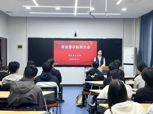 为强化学风建设,严明学习纪律,精准帮扶学业困难学生,4月23日,国际教育学院在教二楼200召开学业警示教育大会。学院党委副书记张智勤、教学副院长贺宁、教务员及全体学业预警学生参会。